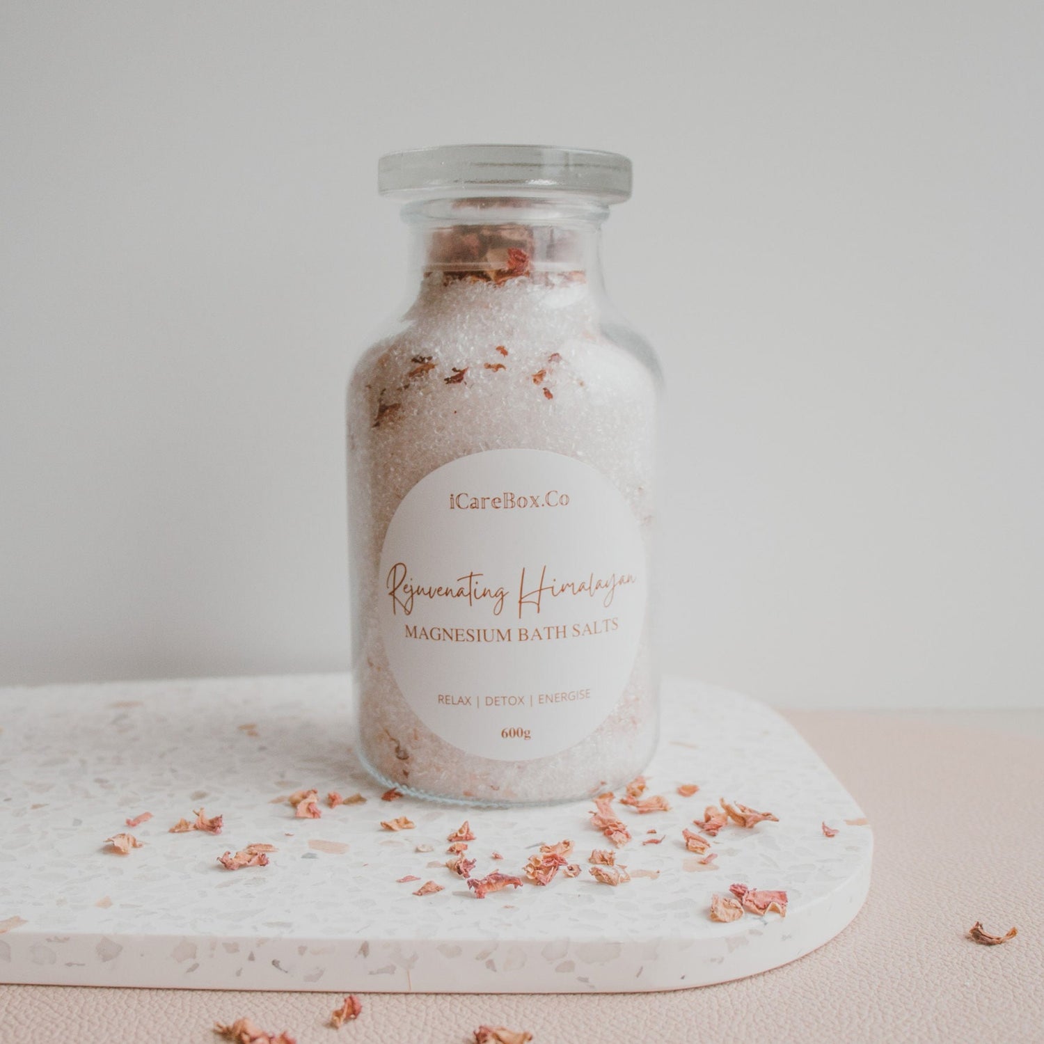 Magnesium and Himalayan Rock Bath Salts with rose petals to help you RELAX / DETOX & ENERGISE